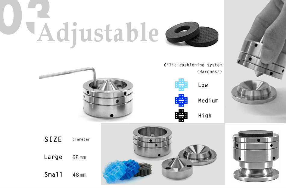 『Audiophilebox』音響墊材,為您打造完美音質 到底要選擇那種材質的墊材 ? 其實並沒有一定. 墊材的使用並非讓音響達到出神入化的境界, 而是找尋到對自己最適合的聆聽感受. 『Audiophilebox』的產品, 就是要ONE FOR ALL. 會長高又會變身的墊材(small) , 您體驗過了嗎 ? 碳纖維是目前公認可得最好的材料,幾乎每一天都有一個關於碳纖維新的應用出現。自從四十年開始,這個奇特的材料逐漸的成為我們生活中不可或缺的一份子。碳纖維重量僅鋼板的四分之一,不但比鋁輕但強度則達鋼板的10倍。 調整, 穩定, 幫您找到對自己最適合的聆聽感受. 請務必播空試聽